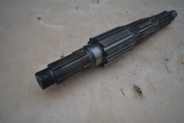 Вторичный вал изготовлен из стали 25 ХГМ, глубина нитроцементации 0,8…1,1 мм, твердость поверхностного слоя HRCэ 61…66, твердость сердцевины HRCэ 37…46. Биение шеек вторичного вала относительно оси допускается не более 0,05 мм. Применение шеек к выкрошенным цементированным слоем усталостного характера не допускается. Параметры шлицев шеек вторичного вала • Диаметр шейки переднего конца вала под роликовый подшипник — 29,939..29,960 • Диаметр шейки под шариковый подшипник — 50,003…50,020 • Диаметр шейки под втулку шестерни постоянного зацепления четвертой передачи — 47,003…47,020 • Диаметр шейки под косозубую шестерню постоянного зацепления второй передачи — 60,920…60,940 • Толщина зуба шлицевой части вала под синхронизатор: - второй и третьей передач — 8,88…8,94 - четвертой и пятой передач — 10,90…10,95 • Толщина зуба шлицевой части вала под шестерню первой передачи — 10,88…10,94 • Толщина зуба шлицевой части вала под фланец — 5,99…5,94
