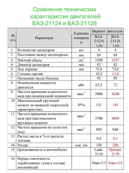 Характеристика двигателя 21124 16 клапанов