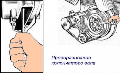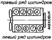1. Выключить подачу топлива. 2. Отвернуть болты крепления крышек головок цилиндров и снять крышки. 3. Проверить момент затяжки болтов крепления осей коромысел, который должен быть 120…150 Нм (12…15 кгс·м).Проворачивание коленвала (рис. 2)4. Проворачивая коленчатый вал по часовой стрелке (при виде со стороны вентилятора) спереди ключом за болт крепления шкива или сзади воротком за маховик через люк в нижней части картера маховика, используя отверстия в маховике (рис. 1), установить момент, когда впускной клапан первого цилиндра полностью поднимется (то есть закроется). Продолжая вращать коленчатый вал, провернуть его еще примерно на 1/3 оборота (примерно120°). Это положение коленчатого вала соответствует такту сжатия в первом цилиндре и оба клапана этого цилиндра будут закрыты. 5. Проверить щупом зазор между торцом клапана и носком коромысла у впускного и выпускного клапанов первого цилиндра и, при необходимости, отрегулировать.Регулировка зазоров клапанов (рис. 3)6. Для регулировки зазоров отвернуть гайку регулировочного винта, вставить в зазор щуп и, вращая винт отверткой (рис. 3), установить зазор 0,25…0,30 мм. Придерживая винт отверткой, затянуть гайку и проверить величину зазора. При правильно отрегулированном зазоре щуп толщиной 0,25 мм должен входить при легком нажиме, толщиной 0,30 мм – с усилием. 7. Для регулировки зазоров клапанного механизма остальных цилиндров провертывать коленчатый вал в том же направлении до полного закрытия впускного клапана регулируемого цилиндра и дополнительно еще на 1/3 оборота. Зазоры регулировать как указано выше (см. п.6). Регулировку зазоров по цилиндрам рекомендуется проводить в соответствии с порядком их работы. Порядок работы цилиндров: 1-5-4-2-6-3-7-88. После окончания регулировки зазоров запустить двигатель и прослушать его работу. Стуков в клапанном механизме не должно быть. В случае наличия характерного стука клапанов остановить двигатель и регулировку зазоров повторить. 9. Поставить и закрепить крышки головок цилиндров, проверить состояние прокладок. В месте прилегания крышек масло не должно подтекать.
