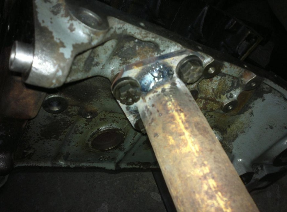 С обратной стороны и на кронштейне сделал 3 отверстия сверлом на 12 для болтов, после притянул.