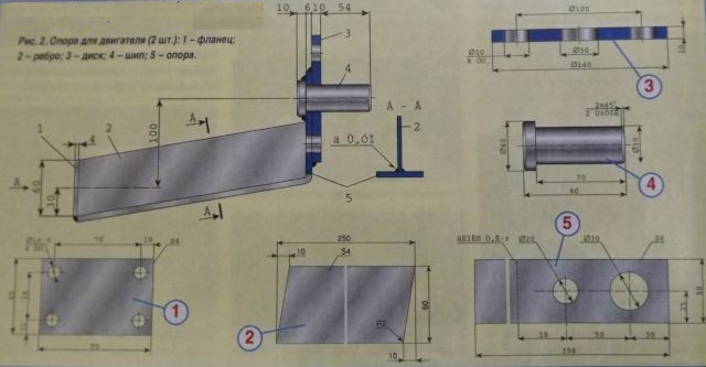 Из метала толщиной 6 мм сделан кронштейн под вазовский двигатель (под другой двигатель надо делать свой кронштейн.
