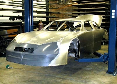 С проектирования такой рамы и начинается создание болида NASCAR. Силовая рама обеспечивает безопасность пилоту при авариях, на скоростях близких к 400 км/час. Причем такие случаи не являются редкостью и происходят постоянно. Высокая аварийность возникает из - за очень близкого движения болидов друг относительно друга. Пилоты машин едут буквально в полкорпуса, чтобы как можно эффективней использовать зону разряжения, образуемую впереди идущим автомобилем. Задний спойлер как раз и создан для образования области низкого давления за задней частью болида NASCAR. Что является еще одним отличием от всех имеющихся гоночных серий. Ни в ноной из них, машины не собираются в такие длинные колонны, для поддержания высокой скорости движения друг друга. Передний спойлер создает баланс автомобиля и позволяет более тонко настроить болид, для большей устойчивости и лучшей аэродинамики. Основные размеры корпуса автомобиля строго регламентированы и проверяются по шаблонам, при аттестации болида. Все панели покрывающие болид изготовляются вручную из листового металла, с помощью так называемого "английского колеса". (металлические ролики между которыми катают лист метала, до получения нужной, округлой формы) После чего листы привариваются к раме, а швы зачищаются до образования гладкой поверхности. Фары и двери в машине НАСКАР отсутствуют. Фары наклеены пленкой либо покрашены, в качестве двери для пилота, используется окно болида.