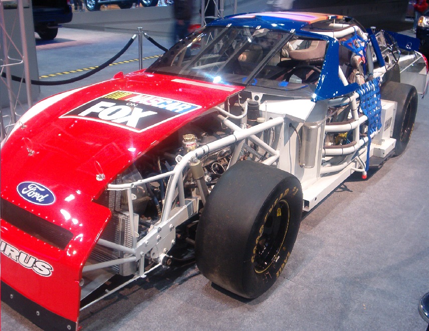 NASCAR (НАСКАР) - гоночная серия, которая представляет собой американское видение гонок на выносливость. Так к примеру во всемирно известном чемпионате гонок на выносливость Le Mans, пилоты, периодически меняясь, управляют болидом в течении 24 часов без перерыва. В Le Mans существует несколько классов и используются обычные гоночные извилистые трассы. Пилоты за 24 часа успевают проехать более 5000 км. Рекорд 2010 года составляет 5410 км и средняя скорость 225 км/час.В NASCAR все обстоит несколько иначе. Трассы не извилистые, а овальные, с поворотом все время в одну сторону. Места поворотов, имеют большой наклон к центру трассы, чтобы улучшить сцепные свойства болида и препятствовать вылету с трассы на больших скоростях. Благодаря таким трассам гоночные болиды NASCAR могут двигаться все время с почти максимальными скоростями и даже в поворотах, держать полностью открытым "дроссель" двигателя. Самая высокая средняя скорость круга в NASCAR была установлена на трассе California Speedway и составляет 388.537 км/ч, что является самой высокой средней скоростью прохождения круга в автоспорте. Средняя скорость за гонку, на той же трассе 333 км/час включая пит-стопы, для смены шин и дозаправки. Выносливость этих гонок определяется, не временем нахождения болида на гоночной трассе, а скорей по времени нажатия полного дросселя двигателя! Что касается гоночного автомобиля NASCAR, то здесь все одновременно и просто и сложно. Просто, потому что рамки правил не позволяют сильно усложнять конструкцию машины и внедрять сверх современные и очень дорогие технологии. Так например одним из таких правил является обязательное использование карбюратора в конструкции двигателя (до 2012 года). Сложно, потому, что нельзя просто взять и усовершенствовать какой либо заводской автомобиль, до состояния гоночного болида NASCAR. Автомобиль должен быть создан с нуля, так как все агрегаты и узлы базируются на очень прочной пространственной раме из стальных труб, довольно большого сечения.