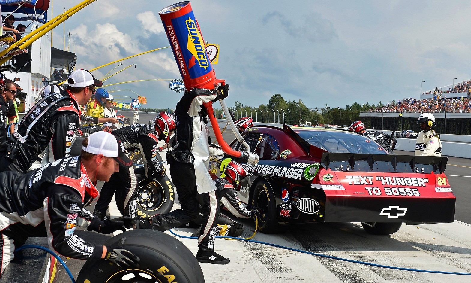 Забудьте о заправочных машинах, здесь баки наполняют из тяжелых канистр, которые вручную подносят из боксов. Из-за внушительного веса баллонов «заправщиками» становятся самые крепкие ребята. За время остановки на пит-лейне им нужно залить в бак болида содержимое двух канистр, но из-за отсутствия современной телеметрии команды не знают в точности, сколько топлива в машине у пилота.