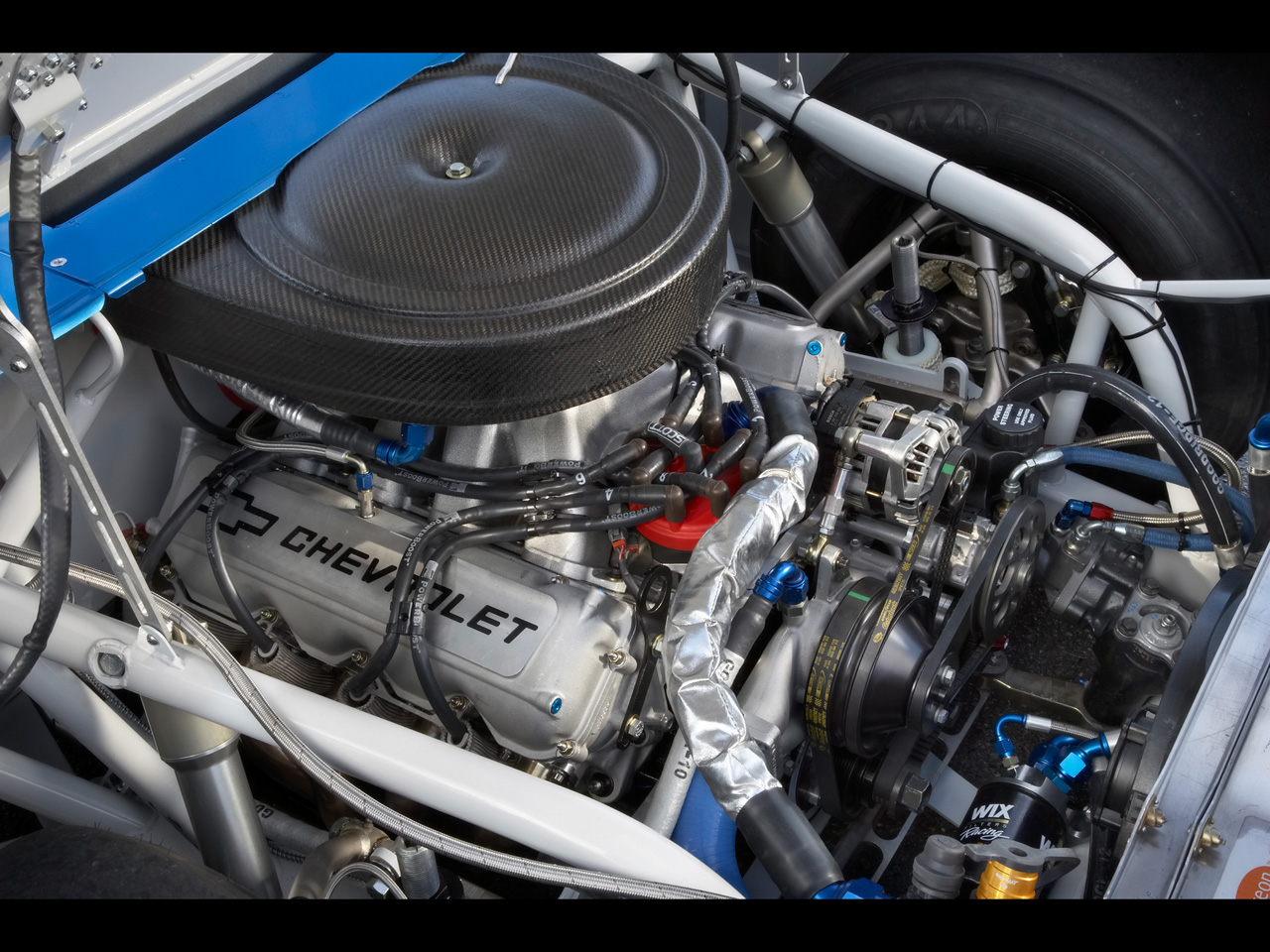 Двигатель NASCAR имеет строгие ограничения по рабочему объему в 5.86 (358 куб. дюймов) литра V8 с нижним расположением распределительного вала. Хоть в 2012 году обязательное использование карбюратора и было отменено все равно система питания напоминает 4 дроссельный карбюратор, с использованием впускного коллектора подобного карбюраторному. Мощность двигателей составляет около 770 лс. на плавных и быстрых трассах мощность мотора ограничивают, ставя ограничения на впуске, что понижает мощность до 450 лошадей. Конструкторам в таких условиях приходится делать упор на аэродинамику, максимально улучшая ее. V8, 16V (2 клапана на цилиндр), объемом 358 куб.дюйма (5,86 литра, до 1971 года использовались двигатели объемом 429 куб.дюйма — 7 литров), не используются турбины, компрессоры и т.п., степень сжатия 12:1, мощность этого американского атмосферного монстра по разным данным от 750 л.с. до 865л.с. Крутящий момент составляет 530 foot-pounds. что равняется примерно 718 Н/м.![]()