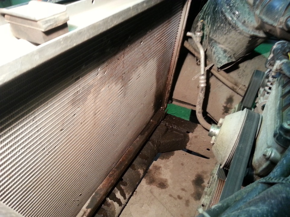 На удивление, снятая помпа оказалась совершенно целой, ничего страшного с ней не произошло, крыльчатка на месте, люфтов нет, скрипов тоже. От новой помпы подошла только прокладка, пришлось ставить обратно старую. В любом случае, от снятия/установки помпы образовались два положительных момента: заменил болты на нормальные и заменил два коротеньких патрубка, они были каменными. Но самый прикол заключался в том, что перегрев все-таки был связан с забитым радиатором! Просто в свое время оказывается я промывал радиатор кондиционера, который похож на основной, а вот радиатор двигателя можно промыть, только сняв кожух и вентилятор с вискомуфтой, иначе не подлезть. Говна из него вымылось изрядно, и вот только после помойки наступило счастье!