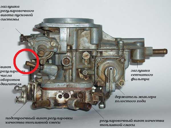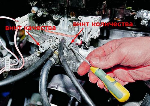 1. С помощью винта количества добиваемся частоты вращения коленвала от 820 до 900 оборотов в минуту.