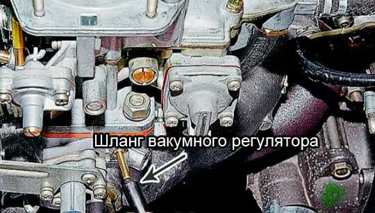 Неплотное соединение шланга вакуумного регулятора опережения зажигания приводит к попаданию в карбюратор избытка воздуха.