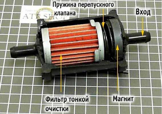 Благодаря продуманной конструкции и простоте АКПП Jatco JF414E на Лада Гранта практически не требует обслуживания и при соблюдении правил эксплуатации не доставит никаких проблем. Тем не менее этот автомат очень не любит резких стартов и чувствителен к качеству масел (ATF), плохо относится к перегревам и езде на высоких скоростях. Также отмечен ряд проблем, связанных с особенностями конструкции: • АКПП чувствительна к перепадам напряжения в бортовой сети, плата управления гидроблоком может выйти из строя, к примеру, при неправильном прикуривании двигателя. • В начале производства первые автоматы страдали из-за выхода из строя одного из игольчатых подшипников между ступицей гидронасоса и пакетом High, но к 2013 году эту неприятность японцы победили. • Если не установить внешний фильтр тонкой очистки, через 180-220 тысяч пробега продукты износа фрикционов могут повлиять на ресурс соленоидов. Установка такого фильтра на Грантах с крепким пробегом существенно повысит ресурс АКПП, поскольку устанавливается он снаружи коробки, всегда в доступе и его можно быстро очистить или сменить фильтрующий элемент.Наружный фильтр тонкой очистки АКПП Jatco JF414EКогда менять масло в АКПП на Лада Гранта?
