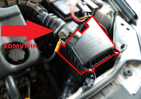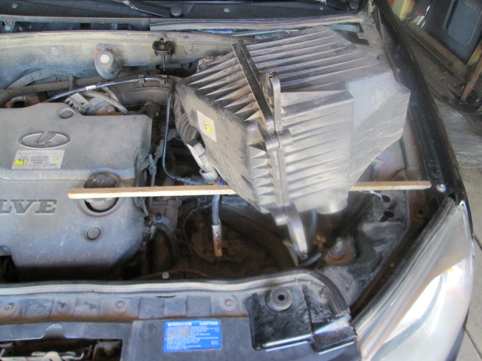5. И не отсоединяя ни каких датчиков отводим корпус воздушного фильтра в сторону, примерно, как у меня на фото.