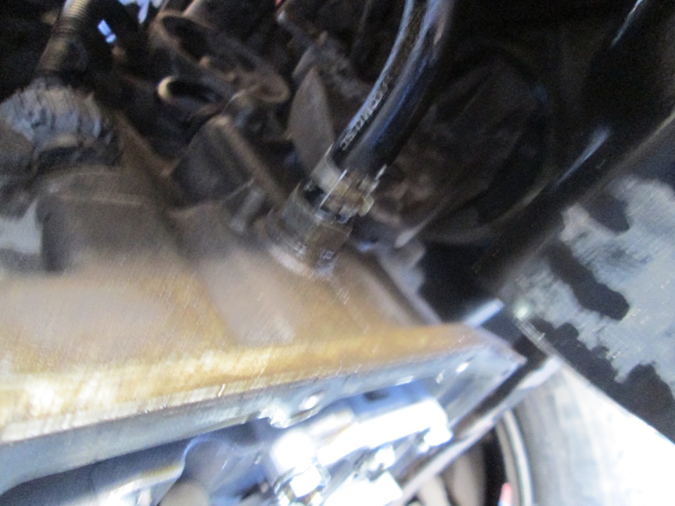 16. Просим помощника завести авто на нейтрале и внимательно смотрим на цвет масла которое польется под небольшим давлением из шланга прикрепленного к штуцеру коробки. Как только цвет масла стал чуть светлее кричим помощнику: «Глуши мотор»! (примерно через 7-10 секунд должно пойти светлое масло) Сольется ещё примерно 2,5 – 3 л. 17. Ставим шланг обратки на место.