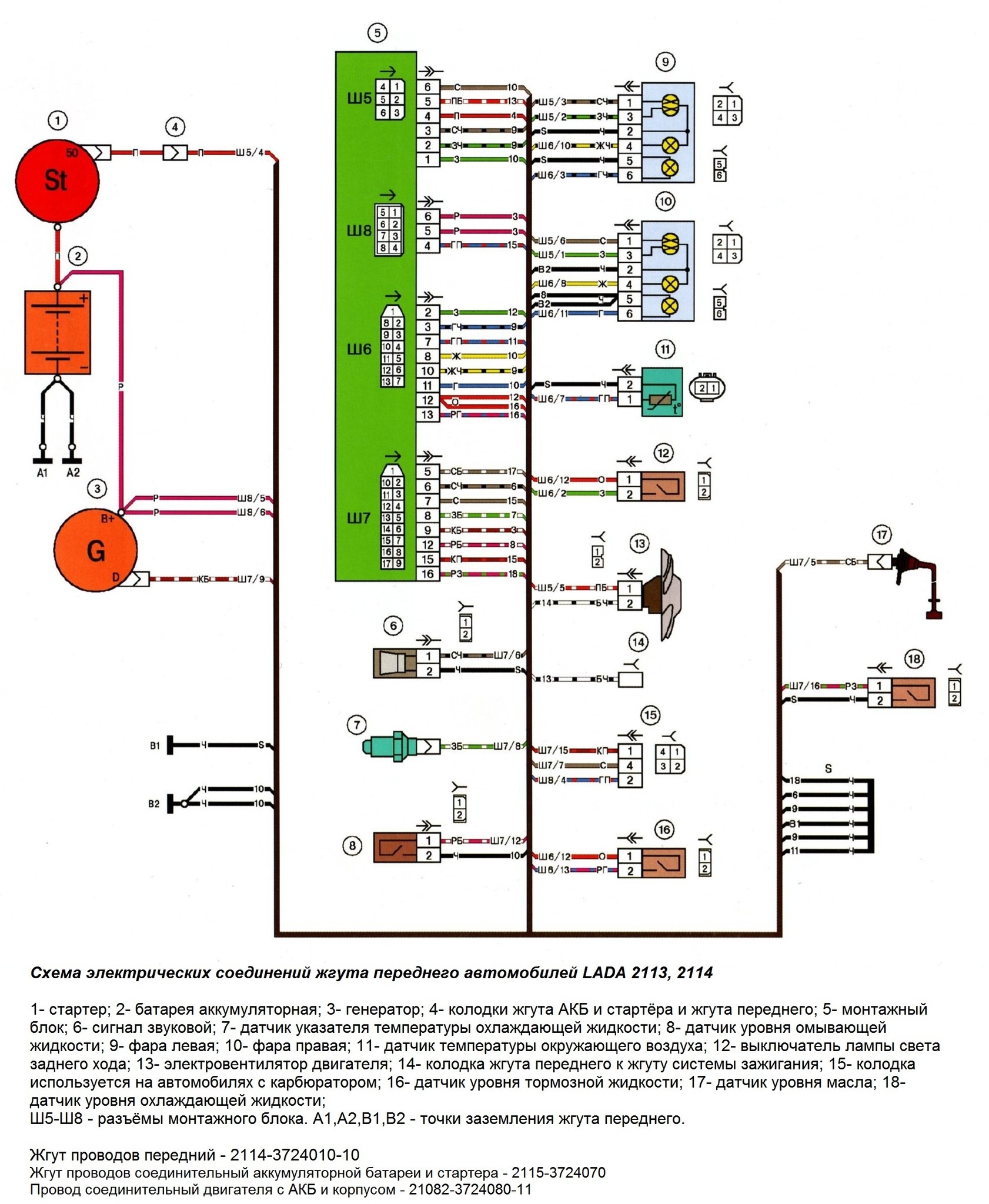 - Схема переднего жгута ВАЗ 2114 инжектор