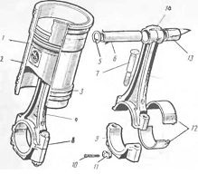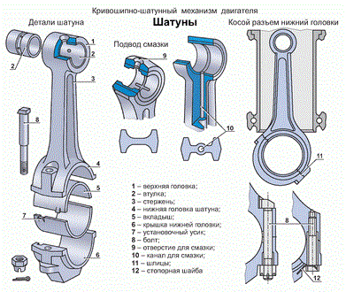 - Общий вид шатуна в сборе и элементы его конструкции
