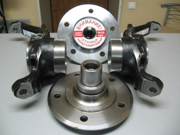 В Ниве Шевроле передние ступицы нужно периодически регулировать, для обеспечения нормальной работы. Чтобы избежать такой «заморочки» стандартные ступичные узлы меняются на нерегулируемые с необслуживаемыми подшипниками.![]()
