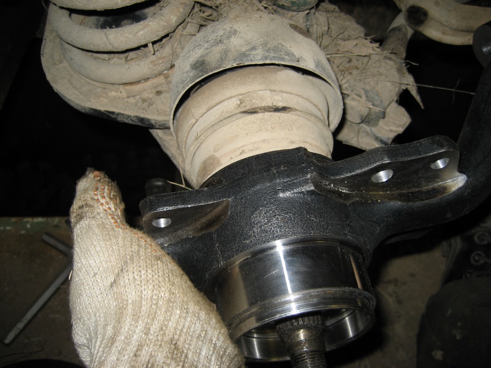 Пыльники. Тут кому как удобно и как снялось. Если поворотный рычаг снимается с болтов то оставляю его на машине. Если болты закисают то кулак снимаю вместе с рычагом и потом при помощи феншуя разбираю. Если снимали кулак с рычагом то собирается вместе с ним.