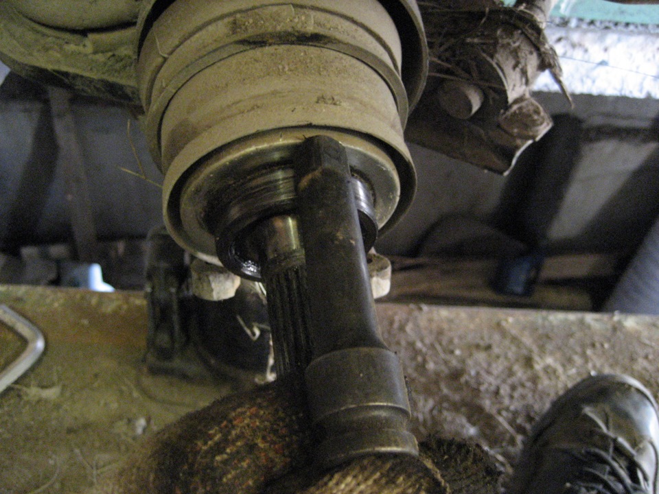 Если следов не осталось то немного осаживаем пыльник шруса упором и молотком. Он может не давать прилегать шрусу к обойме и потом при затяжке может подклинивать.