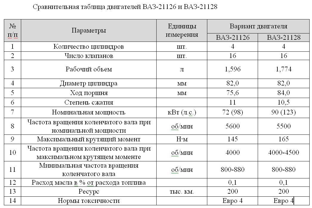 Сравнение характеристик двигателей ВАЗ 21126 и 21128