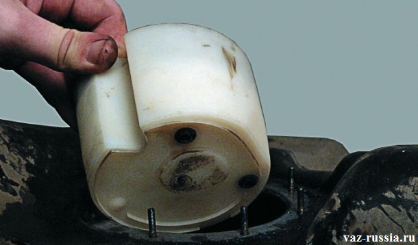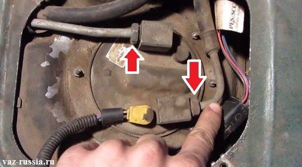 Примечание! Насос извлекайте очень аккуратно и всегда помните о том, что поплавок который так же крепится к этому насосу находится во внутренней части бензобака и поэтому после вытаскивания топливного насоса, чуть его поверните на бок чтобы прошёл этот самый поплавок!
