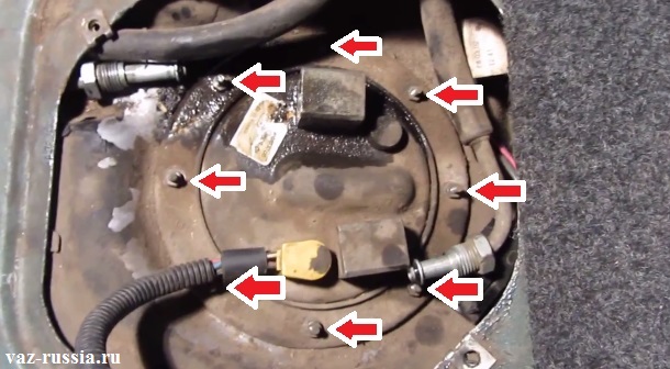 9. И в завершение после снятия бензонасоса, снимите резиновое уплотнительное кольцо со всех шпилек.
