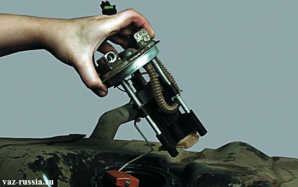 8. После чего извлеките двумя руками топливный насос из бака автомобиля.