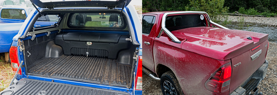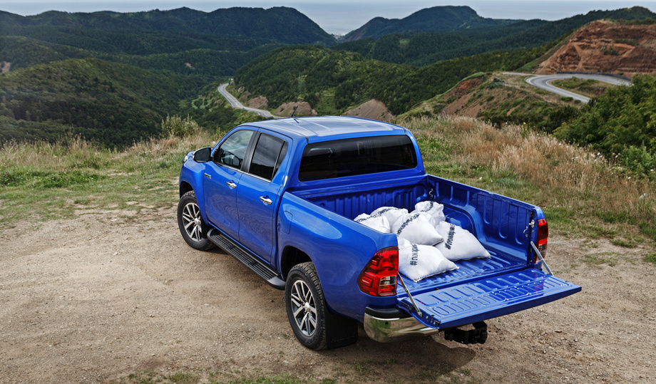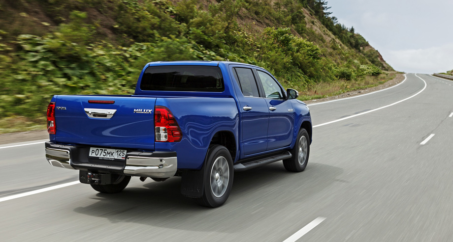 Запаску ставить — пачкаться. Низшая точка заднего свеса — фаркоп, который устанавливается за доплату. Противоподкатный брус отныне располагается выше, за бампером. Ближний к кабине борт усилен приваренной поперечиной.В Москве продаётся 19% «российских» Хайлаксов (больше, 20%, только у Сибири вместе с Дальним Востоком), и здесь им, как и L200, по-прежнему запрещено въезжать в так называемый «Грузовой каркас» Восточного административного округа. Новый Hilux, как и старый, — «грузовик бортовой» с разрешённой максимальной массой 2910 кг при допустимых «каркасом» 2,5 тоннах. Перерегистрировать пикапы как легковушки, судя по новостям Департамента транспорта Москвы, никто не собирается. Поэтому столичным покупателям остаётся радоваться, что тойотовцы не пошли по пути Форда и не погнались за грузоподъёмностью выше тонны, иначе было бы не въехать и внутрь ТТК: силач Ranger наш рынок уже покинул.Тест-драйв Toyota Hilux - видео
