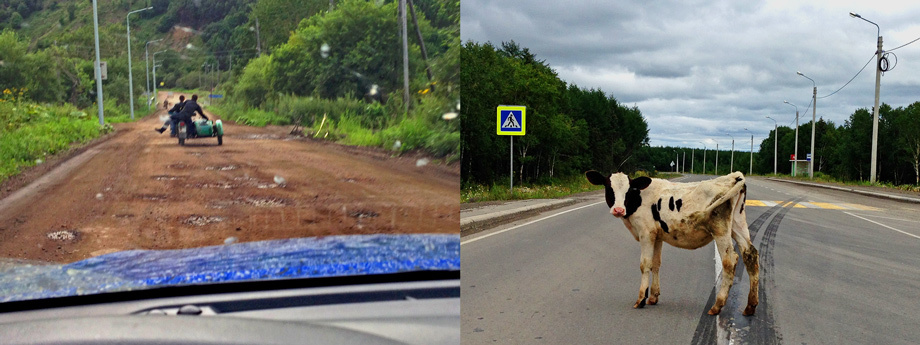 О том, что страна моя родная широка, я знал с детства, но карта, показанная в самолёте перед приземлением в Южно-Сахалинске, всё равно впечатлила. Двустороннее расположение паркоматов — следствие обилия праворульных машин.«Была у меня и «восьмидесятка», и «сотка», — перечисляет таксист свои Ленд Крузеры. Но у меня жена маленькая, ей было неудобно из них выпрыгивать, поэтому взял Alphard. Я зачем вас вожу? Поговорить! Так-то у меня свой бизнес, сауна в центре. Раньше была мойка в аренде, но я так и не смог добиться от неё миллиона рублей в месяц — только 750 тысяч...». Сказки? Возможно, но даже если судить только по машинам, видно, что население тут (в Южно-Сахалинске около 200 тысяч человек) побогаче среднероссийского, хотя и расходы у них выше: бензин, например, на пять рублей дороже, чем в Москве.