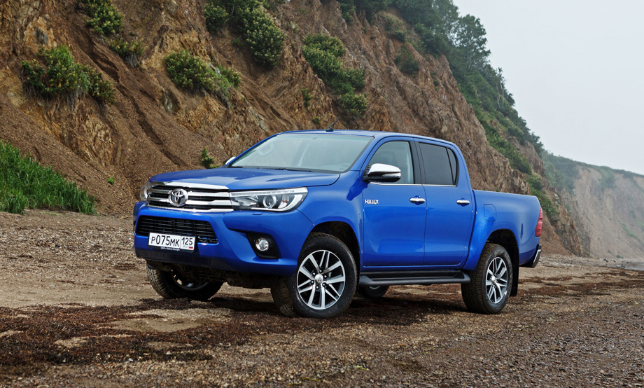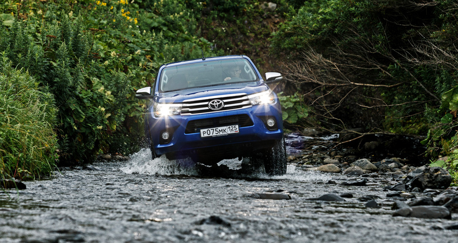 Российские продажи пикапа Hilux уже стартовали: от 1 499 000 рублей за версию с дизелем 2.4 (150 л.с.) и «механикой» до 2 135 000 рублей за Hilux 2.8 (177 сил) с шестиступенчатым «автоматом», светодиодными фарами, бесключевым доступом и кожаным салоном.В опрос, почему для презентации пикапа Toyota Hilux нового, уже восьмого по счёту, поколения был выбран Сахалин, отпадает на выходе из аэропорта Южно-Сахалинска: даже в отсутствие официального дилера (его появление — дело ближайших месяцев) Toyota здесь преобладающая марка. Немного легковушек, туча внедорожников и таксистские минивэны Alphard с усыпанными иероглифами мультимедийными системами. Праворульных машин если не большинство, то так много, что терминалы для парковочных карточек на выезде со стоянки стоят как слева, так и справа.