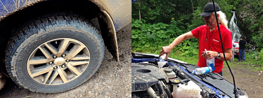 Новый Hilux подучил геометрию: раздаточная коробка теперь располагается выше, дорожный просвет увеличился до 227 мм (+5 мм), угол въезда — до 31 градуса (+1), съезда — до 26 (+4).Ходы задней подвески теперь больше и одинаковы по сторонам (раньше ход левого колеса был меньше, чем у правого), принудительная блокировка заднего дифференциала отныне в «базе» всех версий, а начальные модификации оснащаются 17-дюймовыми шинами А/Т. Но главное по технике — это четырёхцилиндровые дизели 2.4 (150 л.с.) и 2.8 (177 л.с.) нового семейства GD, которые тяговитее и экономичнее прежних агрегатов 2.5 и 3.0 серии KD. Плюс — новые же шестиступенчатые «механика» (в пару первому мотору) и «автомат» (второму). На Сахалине, как принято на презентациях, были только топ-версии.