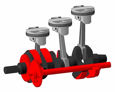 В трех цилиндровых рядных двигателях с расположением кривошипов под углом 120 градусов силы инерции первого и второго порядков уравновешены. Неуравновешенными остаются только моменты от сил инерции первого и второго порядков. У четырехцилиндровых рядных двигателей не уравновешены силы инерции второго порядка. Как правило, эти двигатели с рабочим объемом до 2,3 л не имеют уравновешивающих валов, т.к. абсолютные величины неуравновешенных сил инерции невелики. При большом рабочем объеме приходится устанавливать уравновешивающие валы. Хорошей уравновешенности для четырехтактных четырехцилиндровых двигателей удастся добиться при оппозитном расположении цилиндров (автомобили Subaru, Porsche, Volkswagen с воздушным охлаждением). Правда, при этом остаются неуравновешенными моменты от сил инерции второго порядка. У пяти цилиндровых рядных двигателей с расположением шатунных шеек коленчатого вала под углом 144 градуса положения коленчатого вала силы инерции первого и второго порядков уравновешены. Неуравновешенными остаются моменты от сил инерции первого и второго порядков. Кроме уравновешенности важным требованием к двигателю является равномерное протекание пиковых значений крутящего момент а, т.е. в 2-х цилиндровом двигателе рабочий ход должен быть через 360 градусов, в 3-х цилиндровом — через 240 градусов, в 4-х цилиндровом — через 180 градусов и. т. д. В двухцилиндровых двигателях с рядным расположением цилиндров и коленчатым валом с шатунными шейками под углом 180 градусов неуравновешенными остаются только силы инерции второго порядка и момент от сил инерции первого порядка. Но в данном варианте вступает в действие другое наиболее важное требование: равномерное чередование сил от давления газов. Поэт ому двигатели с таким расположением шатунных шеек применяются только на двухтактных двигателях. В шестицилиндровых двигателях с V-образным расположением цилиндров под углом 60 градусов и шестью кривошипами под углом 60 градусов при равномерном чередовании вспышек через 120 градусов равнодействующие силы инерции первого и второго порядков и центробежных сил равны нулю. Уравновешивание моментов сил инерции первого порядка осуществляется с помощью противовесов, устанавливаемых на продолжении двух крайних щек коленчатого вала. Для уравновешивания моментов от сил инерции второго порядка требуется установка двух валов с противовесами, вращающимися с удвоенной скоростью по отношению к коленчатому валу. При угле развала между цилиндрами 90 градусов и угле между шейками кривошипа 120 градусов углы между вспышками неравномерные (90 и 150 градусов). Остаются и моменты от сил инерции первого и второго порядков.(С)