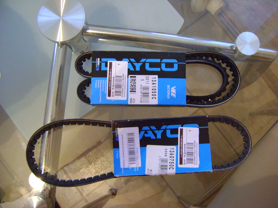 Надо сказать, что на УМЗ ручьи шкивов сделаны под ремни шириной 13мм. и ремни на генератор и вентилятор ставят 13мм импортные. А на ГАЗе ставят ремень ГУРа шириной 10мм, видимо самый дешёвый отечественного производства.Я хотел поставить ремень шириной 13мм. На следующий день заехал в запчасти купил ремень, но подходящей ширины не нашлось в наличии. Пришлось взять Dayco 10Х750 за 200р. Ради интереса решил посмотреть ремни в Экзисте и к моему удивлению нашел их нужной ширины и по очень даже приемлемым ценам. Заказал два ремня, Dayco 13A1050C на генератор и Dayco 13A0750C на ГУР. Заказ делал вечером через интернет, а на следующий день в обед забрал. Оба ремня обошлись в 250р.