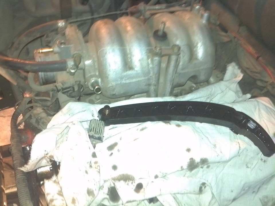 Датчик установленОткрутил две гайки гидронатяжителя, сложность с верхней гайкой, сперва сорвал ее маленьким накидным на 10, затем одел ключ-трубочку на 10 и крутил трубочку пассатижами.Снял гидронатяжитель, выкрутил болт башмака, снял его. Снял звездочку распредвала, цепь и остальные 2 звездочки.