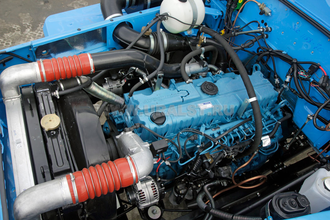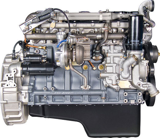 Тип двигателя: дизель, 6-цилиндровый, D*S=105/128 мм, рабочим объемом 6,65 л, 4-тактный, рядный, с задним шестеренчатым приводом агрегатов, жидкостной системой охлаждения, турбонаддувом и охлаждением наддувочного воздуха в теплообменнике типа «воздух-воздух», установленном на транспортном средстве.