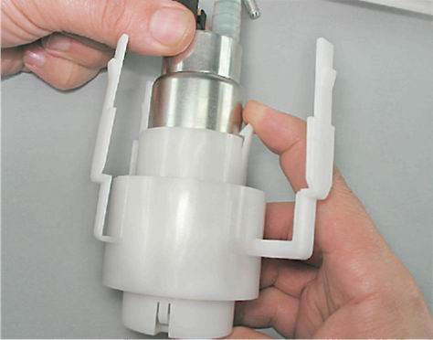 1. Первым делом нужно снять топливный модуль. 2. Достаем насос из корпуса топливного модуля. 3. Снимаем сетчатый фильтр с патрубка бензонасоса.4. Отжимаем фиксатор и вынимаем бензонасос из обоймы.