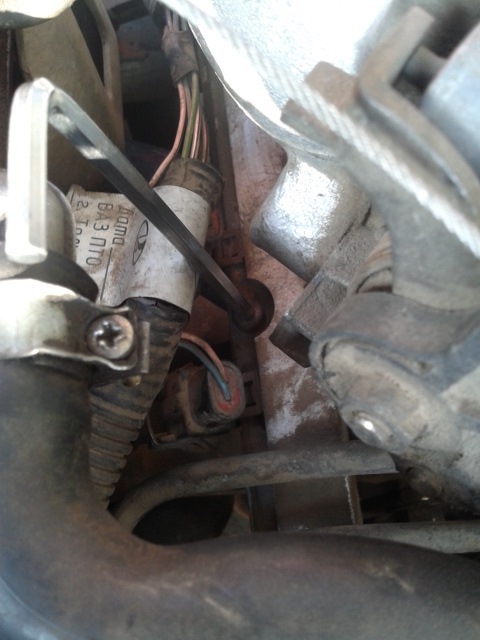4. Далее берем ключи на 24 и 21 или 22 (так для квадратной ТР, для круглой скорее всего два ключа на 24, точно не знаю) и пытаемся открутить трубку, которая идет к ТР под дроссельным патрубком с стороны водителя и пытаемся вытащить ее из рампы.