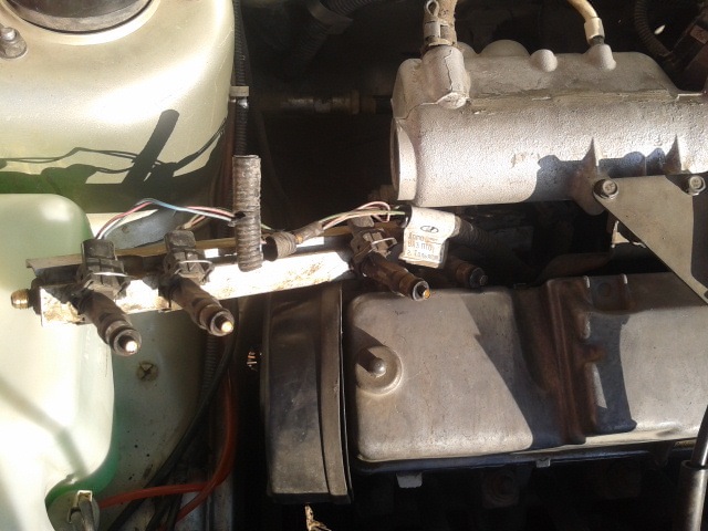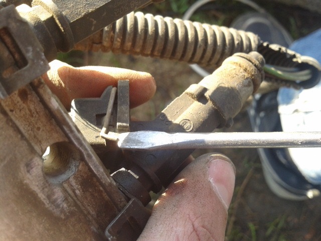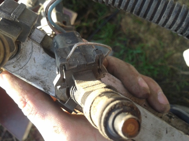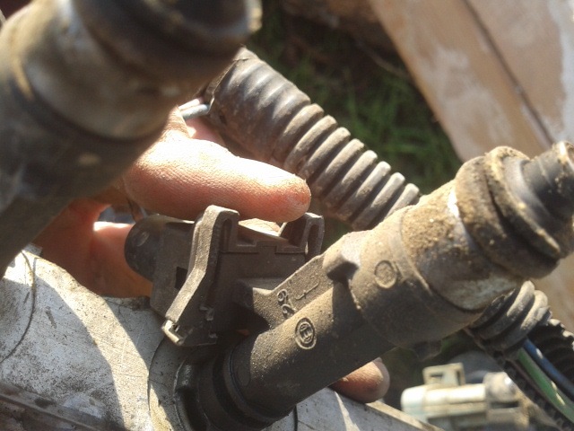 8. Снимаем проводку с форсунок, тут нужна отвертка, пальцем давим на пружинку (П-образная железка).
