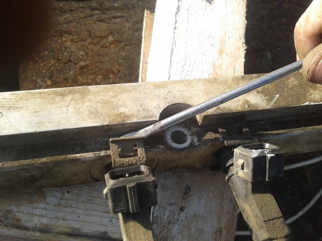 Потом руками или отверткой (кому как удобней) пытаемся вытащить их, тянем в сторону.