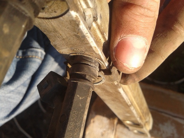 Далее отодвигаем пружинку вперед, должен выйти один конец, второй останется на месте, фишку тянем вверх, т.е. снимаем с форсунки.