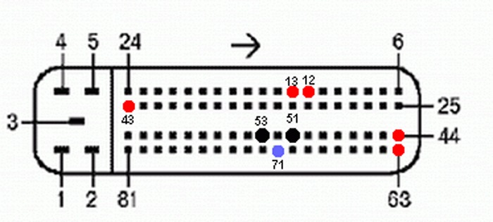 51,53 контакт ЭБУ — Масса 71 контакт ЭБУ — К-Лайн (сюда подключается адаптер для программирования) 13 контакт ЭБУ — Включение зажигания (+12В) 12 контакт ЭБУ – Неотключаемое питание (+12В) 43 контакт ЭБУ — Разрешение программирования (+12В, через резистор порядка 4КОм) 44,63 контакт ЭБУ — Питание главного реле (+12В)