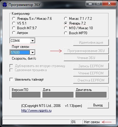 81пинЛибо сделать провода самостоятельно.(из проводов и клемм, не забываем ставить кнопку на подачу питания по схеме 13 контакт!)Вот так как-то должно получиться(Я использую самодельный кабель, с разъемом 81 пин и переключателем питания + Питание беру с прикуривателя) ЭТАП 2 1. Теперь когда всё подготовили переходим к программе winfe_1.13 (программа работает как из по Win ХР так и из под Win 7) 2. Открываем программу 3. Выбираем Январь 7.2 4. Выставляем Порт (Щелкаем и выбираем тот на котором Адаптер) 5. Выставляем скорость 57600Выставляем всеВсе подключено, настроено, программа открыта, врубаем питание на 13 контакт, ждем секунд 30 должна появиться надпись "Связь с ЭБУ", если не появилось выключаем питание сек на 5-10 и включаем опять. Если не появляется, проверяем правильность подключения!Winfe 113Как связь появилась щелкаем на кнопку «Программирование ЭБУ» и выбираем свою Декриптованную прошивку в формате "bin" весить она должна 64 кбайта! Если же она весит меньше(или программа её не понимает), значит надо Декриптовать программой «Enigma»ЕнигмаЗаходим щелкаем Распаковать прошивку, выбираем свою криптованную, Енигма её Декриптует! Далее опять выбираем нашу декриптованную прошивку и ждем когда она зальется. ЕЕПРОМ не трогаем. Отключаем, идем ставим. После репрограммированния блока сброс контроллера с очисткой памяти самообучения (инициализацией) ОБЯЗАТЕЛЕН! ЭТАП 3 Далее если надо удалить иммобилайзер Есть несколько путей. a. Скаченный нами ЕЕПРОМ в HEX редакторе отредактировать на FF b. Залить Чистый ЕЕПРОМ Качаем ищем свой чистый EEPROM Нажимаем запись ЕЕПРОМ… выбираем наш еепром(чистый, или редактированный)… Залилось, отключаем несем в авто. Иммо убито. Иногда еще требуется отрезать провод иммо. Чтобы не прописался заново.ВНИМАНИЕ! Если после ЭТАПА 2 авто заблокировал ИММО(ссать кипятком пока еще рано!))), произведите ЭТАП 3. Если всё таки требуется иммобилайзер. Переобучите ИММО.Переобучение ИММО Красный — и рабочий ключ потребуется • Закрыть двери. • Включить КРАСНЫМ ключом зажигание. • 3 писка. Вытащить ключ. • Быстро (в течение 5-6 секунд) включить ЧЕРНЫМ зажигание. • 3 писка + 2 писка. • Быстро (в течение 5-6 секунд) включить КРАСНЫМ зажигание • 3 писка + 2 писка. • Выключить зажигание КЛЮЧ В ЗАМКЕ. • 1 писк. • Быстро (в течение 5-6 секунд) включить зажигание на 5 СЕКУНД! (Внимание! Обязательно дождаться Сигнала) • Мигнула аварийка, бибикнул сигнал • Выключить зажигание. КЛЮЧ В ЗАМКЕ до погасания машинки на панели. Двухрежимки. Двухрежимная прошивка для ЭБУ Январь-7.2 предназначена для чип-тюнинга автомобилей с ЭБУ типа Январь-7.2, оснащенных системой газобаллонного оборудования (ГБО) третьего и четвертого поколений (GBO-3 и GBO-4) • поддержка регулировки СО с диагностического оборудования в версии GBO-3 • в версии GBО-3 при работе на бутане отключен бензонасос и форсунки, правлен УОЗ во всех режимах работы, в обоих наборах отключены ДК, адсорбер и диагностика пропусков воспламенения. • в версии GBO-4 при работе на бутане правлен УОЗ во всех режимах и отключена диагностика пропусков воспламенения. Внимание! • Для загрузки прошивок в ЭБУ Январь-7.2 необходимо использовать загрузчик CombiLoader производства (SMS ), ChipLoader 1.95, ChipLoader 1.96 производства (CHIPSOFT) или любой другой позволяющий работать с FLASH AM29F200BДва режима в ЭБУ Январь-7.2