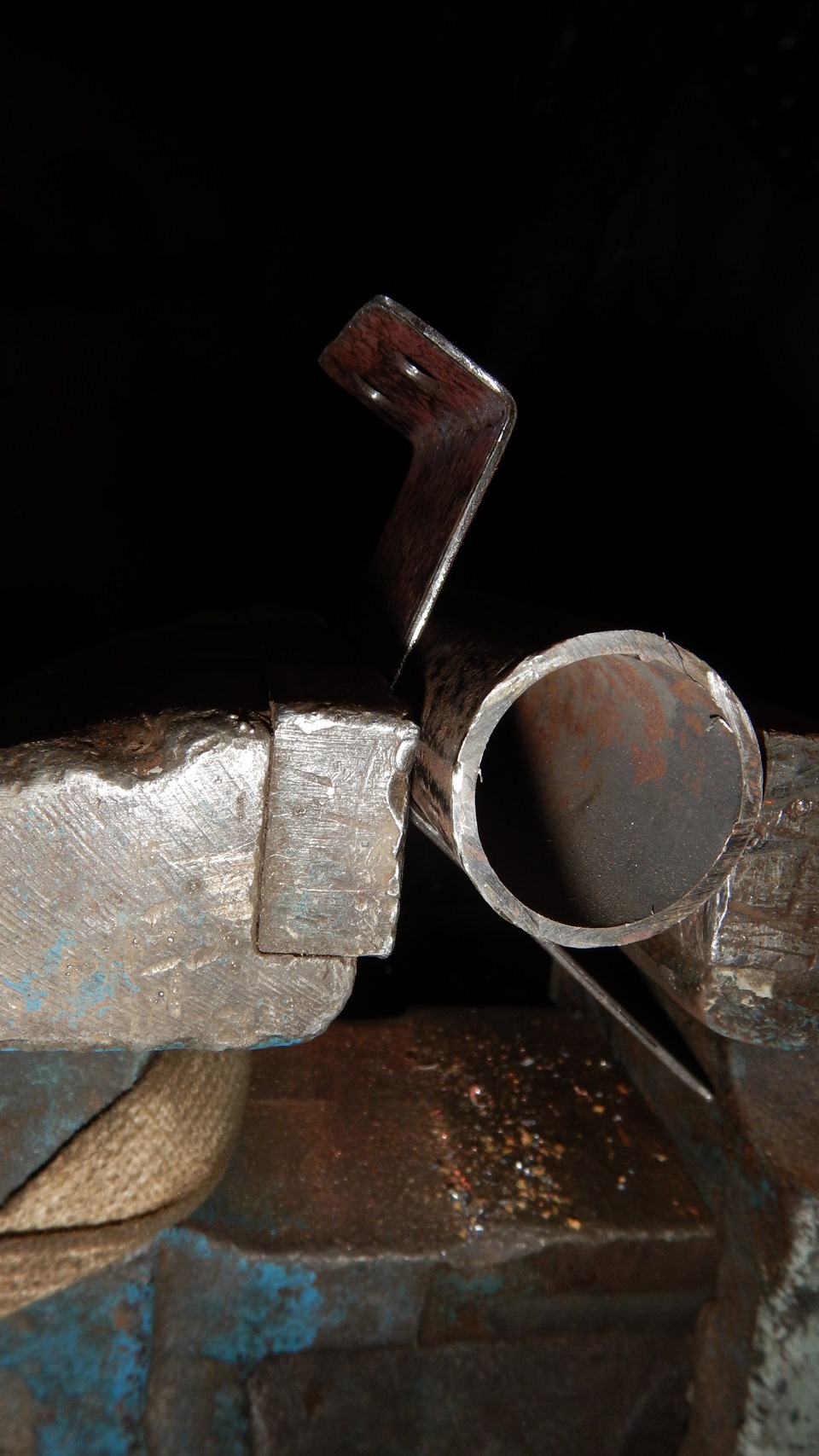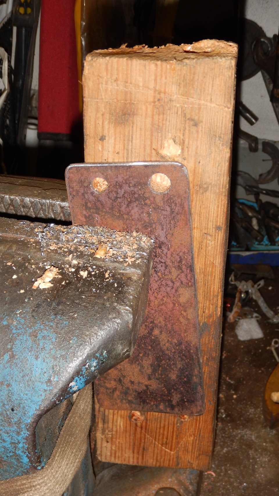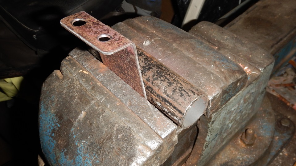 Отверстия в листовом металле проще сверлить зажав лист с деревяшкой, тогда на выходе меньше вероятности закусывания сверла.В качестве оправки использовал отрезок 32-ой трубы у нее наружный диаметр около 35 мм. У рулевой тяги 32 мм.