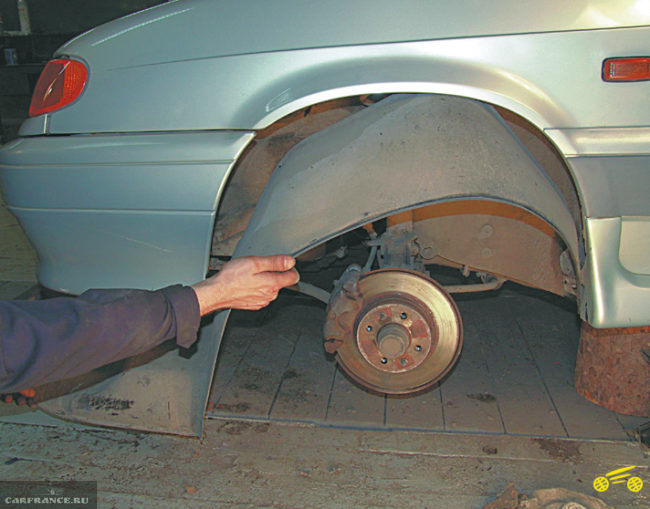 Когда понятно расположение и устройство рулевой рейки можно перейти непосредственно к вопросу замены. Для совершения операции понадобится определенный инструментарий. Какой именно: набор ключей и шестигранников, баллонный ключ, домкрат, ВД-40, Литол-24, ветошь, съемник рулевых тяг, или монтировка с молотком. А также, непосредственно новая рулевая рейка. Если Вы подтягивали рейку и это не помогло, то необходима её замена! Когда всё собрано и готово, можно преступить к рассмотрению пошагового процесса замены: 1. Устанавливаем автомобиль на ровную поверхность. 2. Теперь необходимо поднять переднюю часть автомобиля. Для этого можно обратиться к старинному методу установки машины на бревна. Рекомендуется в багажник положить 3-4 мешка с песком, чтобы наверняка не перевернулась вперед. 3. Откручиваем передние колеса.4. Снимаем минусовую клемму с АКБ. 5. Теперь, откручиваем стопорные болты карданного вала рулевого вала.