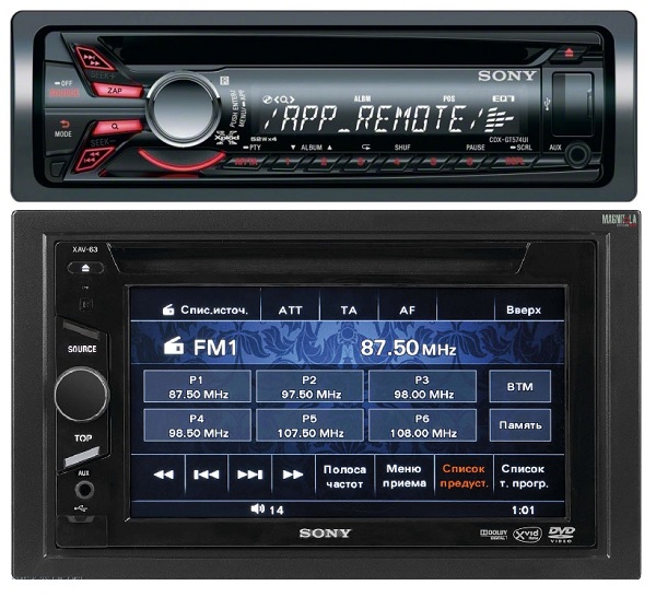 1 DIN и 2 DIN магнитолыЧувствительность тюнера - этот показатель должен быть 1мкв и меньше. Это особенно важно если часто отправляетесь в пригород где радиосигнал оставляет желать лучшего. Также, если необходим УКВ-диапазон, то следует уточнить поддерживает ли его магнитола, ведь не каждая модель ресивера обладает такой возможностью. Количество каналов: двух- и четырехканальные. Двухканальная магнитола позволяет установить в машине только 2 динамика, а четырехканальная – 4. Пятиканальная магнитола, соответственно, позволяет установить четыре динамика плюс сабвуфер. Лучше выбирать авто магнитолу с большим количеством каналов. Если в будущем захотите расширить аудио систему в машине - не нужно покупать новую автомагнитолу, а использовать оставшиеся каналы. Наличие эквалайзера и срезов. Эквалайзер позволяет настроить тембр звучания и регулировку баланса уровня по фронту и тылу. Чем больше количество полос эквалайзера поддерживает ресивер - тем точнее можно настроить авто звук. Магнитолы для автомобиля выше среднего уровня умеют регулировку фильтров низких и высоких частот, они позволяют настроить частоту среза для мидов (колонок в дверях) и пищалок (высокочастотные динамики на стойках) под свои звуковые вкусы. Эксплуатационные удобства - возможность приглушения звука, настройка цвета подсветки дисплея, а также дизайн органов управления. Для некоторых автолюбителей будет важно наличие USB-порта (на передней панели или подключение отдельного шнура) или карты памяти SD. Благодаря им можно слушать музыку не только с дисков, но с внешних носителей. Поддержка связи с телефоном. Некоторые модели автомагнитол имеют возможность подключения к телефону и прослушивание музыки через него. Аудиосистема может играть роль handsfree - разговор будет слышен из динамиков машины. Наличие USB-интерфейса. Автомагнитола с USB позволит вам воспроизводить записанные на USB-флешку музыкальные файлы. Это очень удобно, так как вам не придётся постоянно прожигать диск. На флешку файлы быстро копируются, а к тому же, в зависимости от объёма флешки, на неё может поместиться намного больше треков, чем на CD-диск. При наличии USB-интерфейса в магнитоле, в зависимости от характеристик модели, она может иметь поддержку работы с iPod и iPhone.2 DIN магнитола на ВАЗ 2114 и ВАЗ 2110При выборе автомагнитолы следует ориентироваться на цену, дополнительные удобства и на дизайн. Например, некоторым нравиться синяя подсветка, а другим нужна красная. В остальном, магнитолы одного ценового диапазона по техническим характеристикам мало отличаются.Какой фирмы купить автомагнитолу