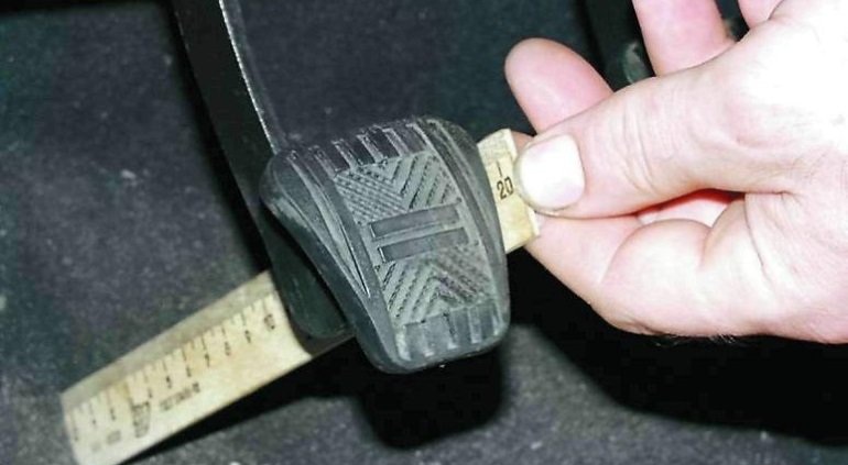 Регулировка тросика: берем рукой конец троса с пластиковым поводком и вытягиваем его преодолевая усилие пружинки на другом конце тросика. Тянуть не бойтесь. Педаль сцепления при этом будет в исходном положении. Выставил 27мм между пластиковым поводком и лапкой сцепления. В салоне машины замеряем величину рабочего хода педали сцепления, он должен быть равен 146 мм. В случае обнаружения отклонения, регулируем расстояние наконечника на тросике.