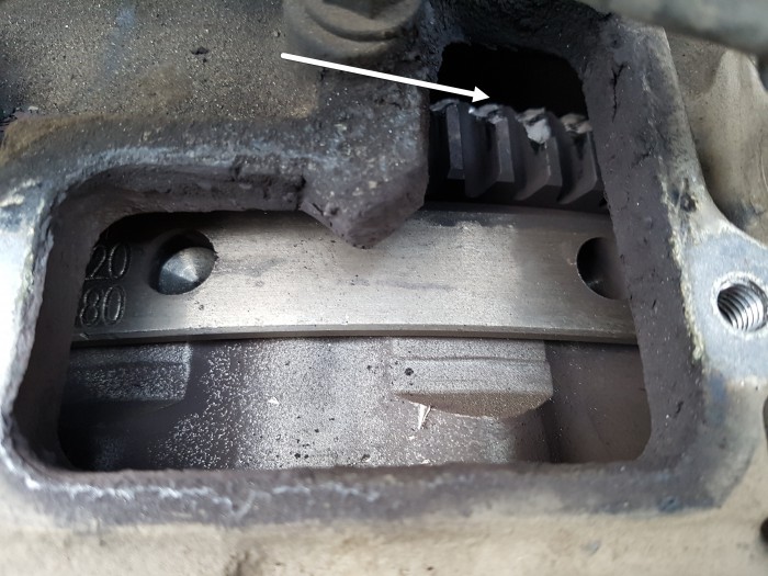Но что вызвало такую деформацию? Прокрутив моховик мы заметили, что несколько зубьев на венце маховика были частично отломлены.