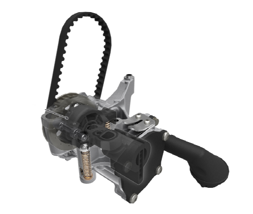 Масляный и вакуумный насос. Масляный / вакуумный насос выполнен в виде сдвоенного насоса, приводимого непосредственно от коленчатого вала зубчатым ремнем в масле. Оба насоса расположены в общем корпусе из литого алюминия под фланцами картера цилиндра в масляном поддоне. Предварительное натяжение ремня указывается при монтаже по межосевому расстоянию компонентов; это приводит к особенно оптимизированному трению привода. Подача масла осуществляется с помощью лопастного насоса с регулируемым объемом.