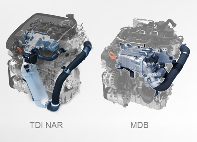Дизельный двигатель 2.0L EA288 развивает мощность 150 л.с. (112 кВт) - это на 10 л.с. больше по сравнению с предшественником. Техническими целями разработки нового дизельного двигателя EA288 на базе MDB были сокращение выбросов CO2; комфорт; и уменьшение расхода.