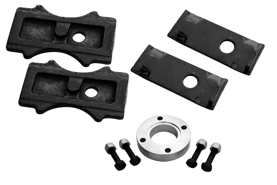 Каталожные номера: 3160-00-2912412-10 — Накладка рессоры УАЗ 3160-00-2912422-10 — Проставка под рессору УАЗ Если использовать шарнир ГУКА, то проставка на кардан уже не нужна, поскольку сам шарнир удлинит кардан. Последним моментом является соблюдение соосности мостов при лифтовке. Как известно, мост центрируется на рессорах при помощи центровочного болта, которым стягивается пакет рессор. Если устанавливаете проставки следите за тем, чтобы в них так же было это центровочное отверстие. А при установке проставок со сдвигом 20 мм, надо убедиться что есть и центровочное отверстие и выступ имитирующий болт рессоры. Иначе, при использовании проставок без центрирования мост будет установлен не параллельно второму мосту. Ухудшится управляемость, будет постоянно "жрать" резину.