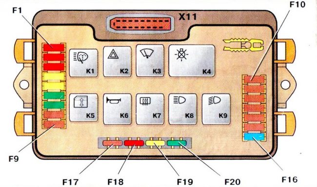 Причиной неработающей печки может стать реле, которое в процессе эксплуатации изнашивается. Ремонту оно не подлежит и сразу меняется на новое. Расположено реле под панелью приборов в блоке предохранителей.Реле печки располагается под панелью приборов в блоке предохранителейПечка издаёт гул, свист, журчание