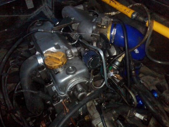 Решил перейти с атмосферы на лёгкий наддув 0,5 бара. И только я подумал и мне подвернулась турбина от субару легаси 96 года выпуска в хорошем состоянии vf13. Все её купил, очень маленькая и очень низовая турбина, в 0 должна выходить на 1700 оборотов. Самое то для городской турбе. Пока поршня сток, думаю на первое время пойдет для 0,5 бар. Позже будет нива поршня. Ищу форсунки с производительностью 200сс хотя бы. Лучше 250сс, посоветуйте дешевые форсунки. Blow-off уже куплен. Интеркулер и датчик давления на очереди. Подскажите нюансы кто ставил. И куда проще слив масла сделать. Думаю в блок в датчик масла. В общем все собрал и поставил. Масло слив сделал в поддон трубка от печки классики в поддоне сделал 3 дырки 1 большую по диаметру трубки и 2 под болты, все на герметик + прокладка из паранита (вырезал сам) все норм не протекает. Масло подачу разумеется тройник от классики и трубку тормозную до турбины все норм 1 неделя полет нормальный нигде не подтекает. Дует пока 0.5-0.6 бар. Думаю проблема в том что дон пайп не правильный сейчас буду переделывать, этот времянка что бы обкатать. Еще проблема плохого буста в распредвале, сейчас установлен стандартный, будет покупаться 11.20 от нуждина что бы увеличить наполнение цилиндра при наддуве ну и выпуск увеличится = раньше раскручиваться будет турбина и буст будет больше. Потом обкатать прошивку. В общем вот что получилось, мотор еще грязный после сборки не отмывал. В общем заказал ещё форсунки от Сааба 373сс производительность повезло что урвал по халяае за 1000р Осталось отстроить мозги и можно будет замерить динамику авто. Пока до 100 быстрее 10 секунд. Форсунки пока стоят волга БОШ 107 260 кубовые их пока хватает детонации нет. Ао расчетам с родным бензонасосом это оптимально более производительные будут требовать более производительный насос. Ориентировочно сейчас около 150 л.с. Буст буду поднимать до 0.7-0.9 бар Но 0.9 буду дуть редко ибо опасно форсунки будут уже работать на 85% — 90% Сейчас проблема только в нагреве мотора, при бусте греется быстро, ну и поршня стоят с кольцами новые это тоже одна из причин. На очереди установить радиатор побольше (ауди 80 бочка) и интеркулер, который валяется в багажнике. А так же будет установлена алюминиевая защита между впуском и выпуском что бы не грело впуск, и термо лентой будет обматываться. Собиралось все к спеху, будет поездка в деревню, посмотрим как покажет себя на трассе машина. Пока бюджет на постройку турбо на 8 клапаеах вышел около 18000р + руки и сварка, ну и разумеется голова.![]()