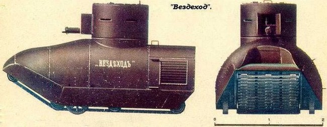 Самый первый танк в мире был создан А.А.Пороховщиковым, который был русским конструктором и летчиком. Идея создать такую машину возникла у него, когда он видел солдат, бегущих под пулеметным огнем врага. В голову конструктору пришла мысль, что штурмовать окопы врага лучше доверить боевой машине, которая будет «одета» в броню и снабжена пулеметом. К созданию такой боевой машины приступили в феврале 1915 года. Самый первый танк в мире получил название «Вездеход». На свой испытательный пробег машина вышла в этом же году в конце весны (в мае). Конструктивно «Вездеход» имел все необходимые элементы, которые и сегодня присутствуют в боевых машинах (корпус в броне, оружие в башне, гусеничный движитель и т.д.).
